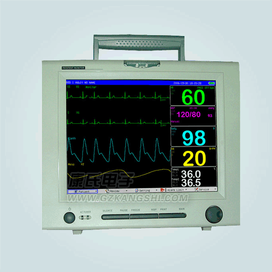 产品规格 1、12寸TFT彩色液晶显示,旋转鼠标操作,方便快捷,可显示12道波形 2、轻便小巧,易于携带 3、存储可达95小时监护趋势数据,独有的语音报警功能 4、内置联网功能,可与中央监护系统联网实现中央监护系统 5、监测参数:心电、呼吸、无创血压、体温、血氧饱和度、脉博 6、采用了全隔离浮地,心电抗除颤保护,心电抗高频干扰,抗肌电,数字滤波 7、NIBP双重过压保护、温漂控制等多项技术措施降低风险,确保在恶劣环境下测量数据的准确性